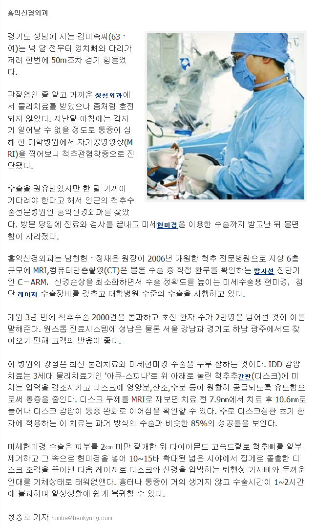 [메디컬 럭셔리] 감압치료로 눌린 디스크 회복..3년만에 척추수술2000건! > 언론보도