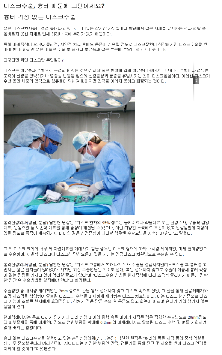 [중앙일보 보도자료 11.5.17]디스크수술, 흉터 때문에 고민이세요?