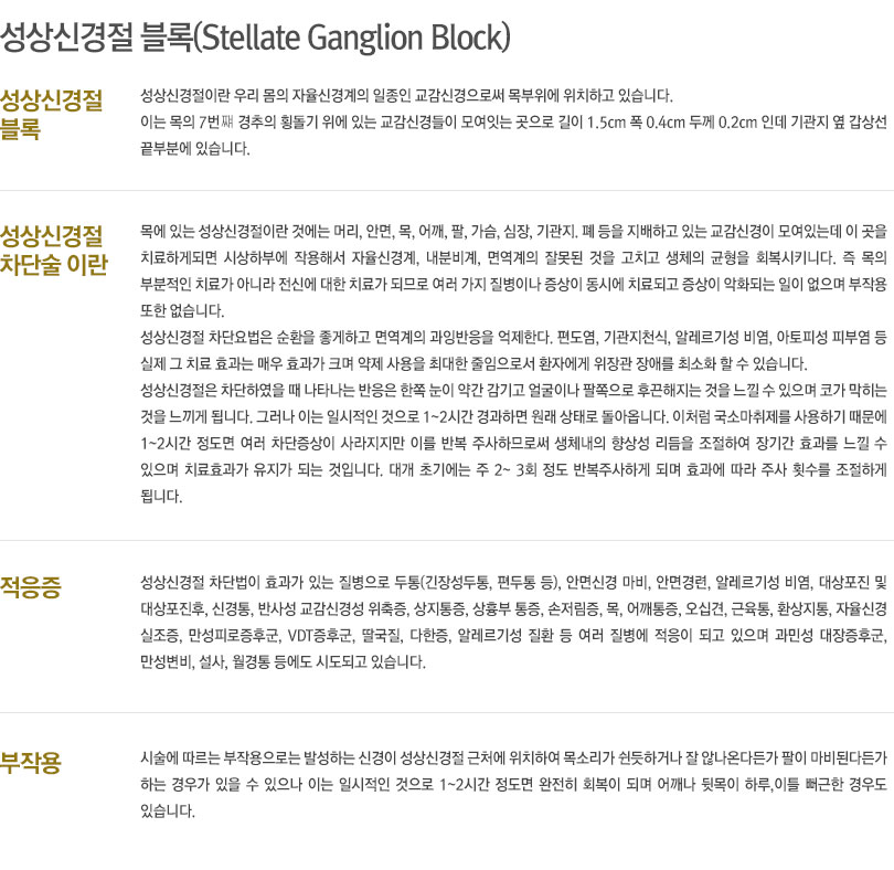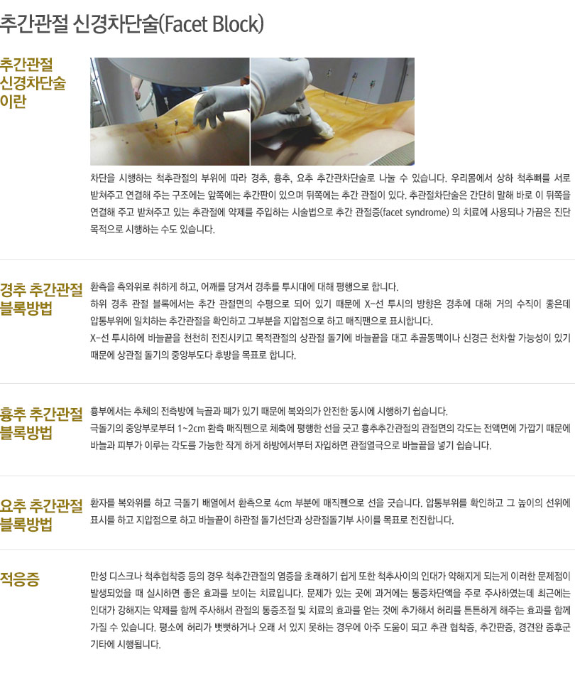 각종 급,만성 통증의 조절과 암성 통증의 조절을 위해 이용할 수 있는 신경차단 치료법에 크게 50여 종류가 넘는다.